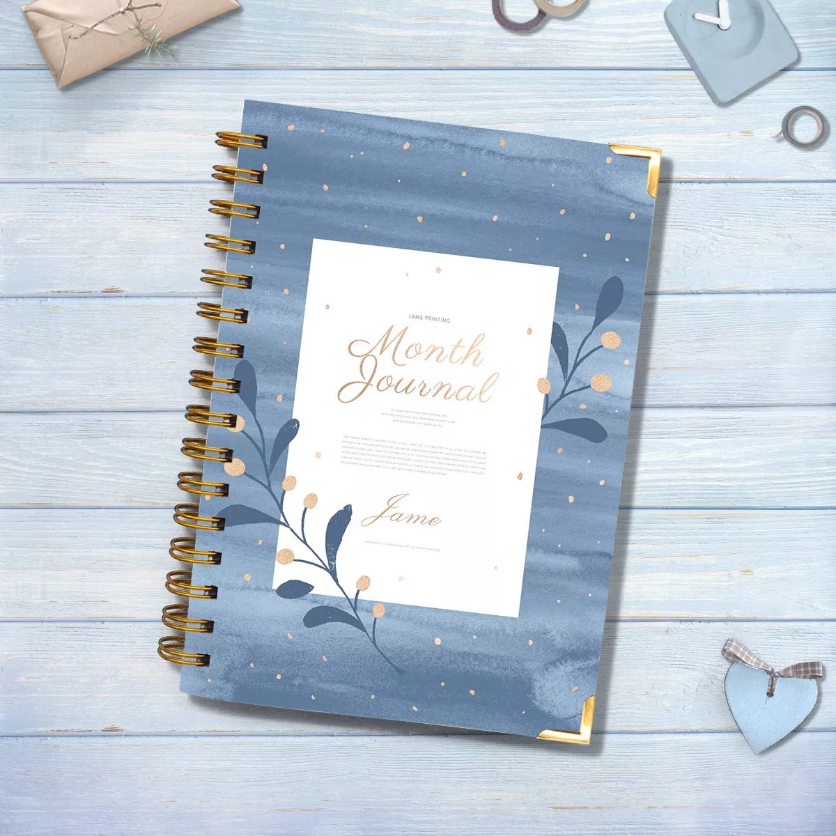 Carnet rayé par livre à couverture dure coloré bleu avec Logo For Daily Notebook de estampillage chaud