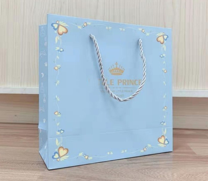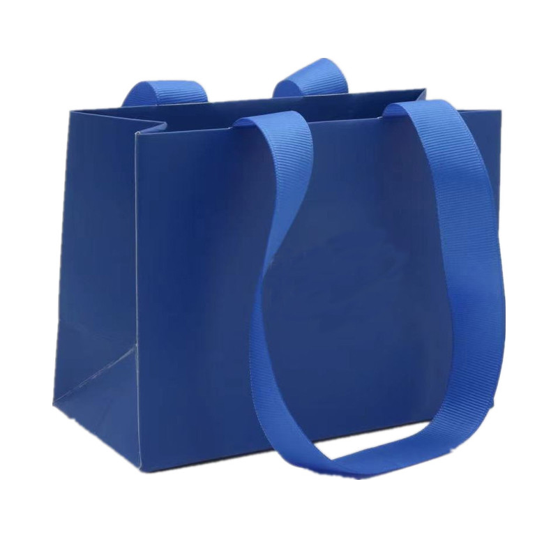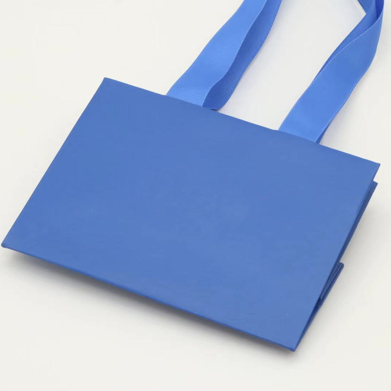 Sac de papier de achat bleu de cadeau dans les sacs de empaquetage