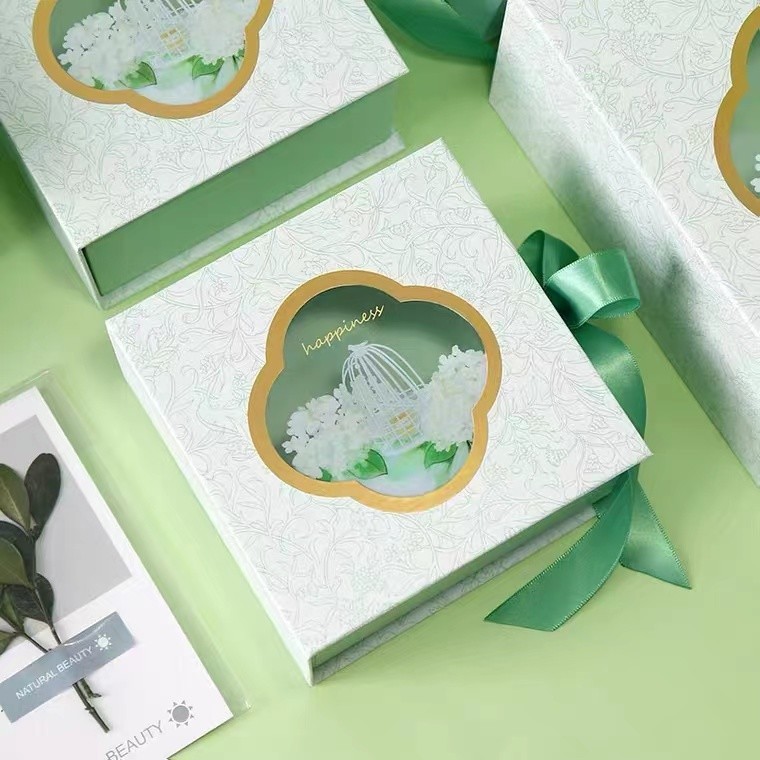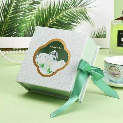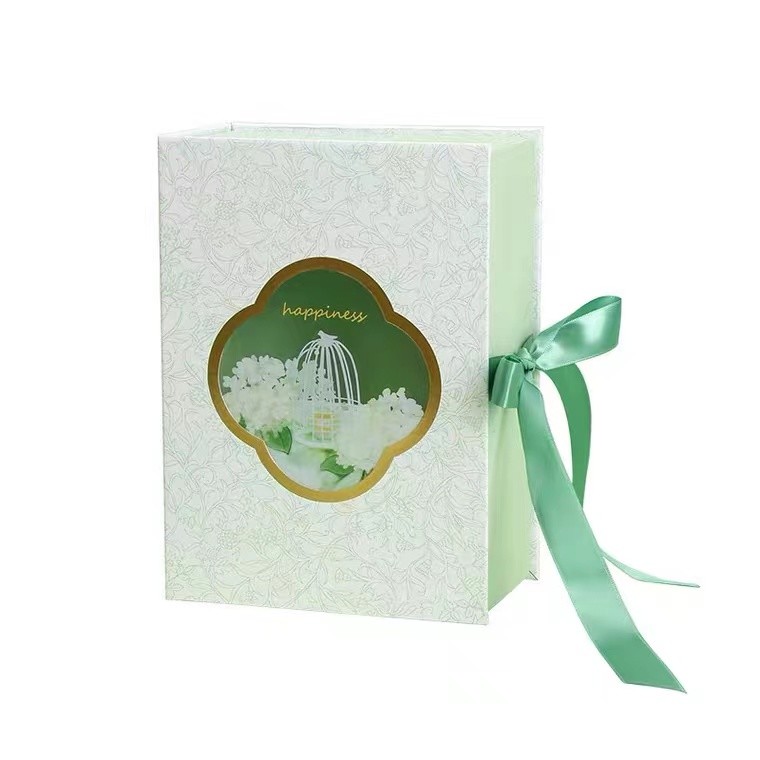 Art Paper Book Carboard Boxes vert avec la fenêtre transparente de ruban pour l'emballage de cadeau de parfum